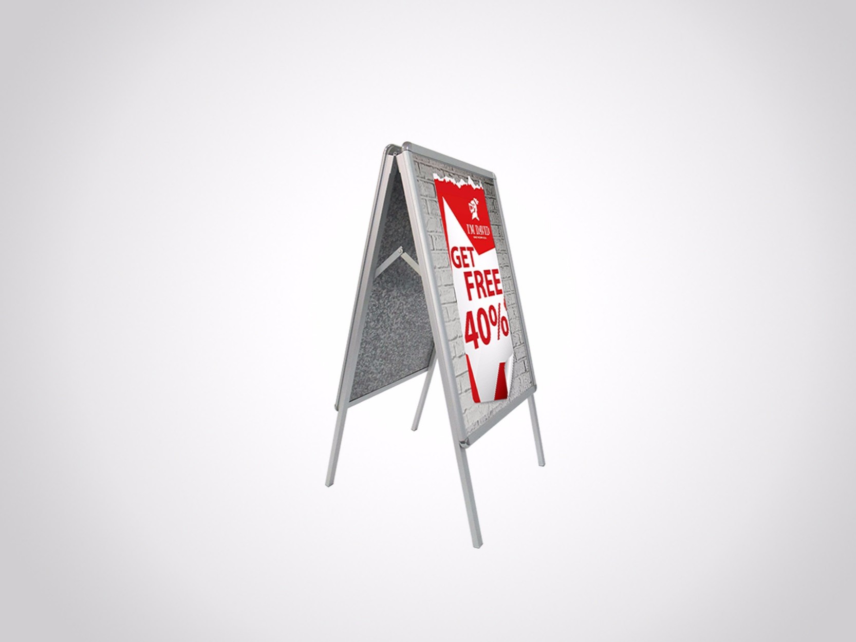 靈特爾的雙面人字按壓式安裝戶外海報架,全身鋁合金打造,質地輕盈、經久耐用;畫面外附防護膜減小紫外線照射造成的損傷;框架為32mm標準尺寸,且無擠壓、劃痕等,精致美觀。