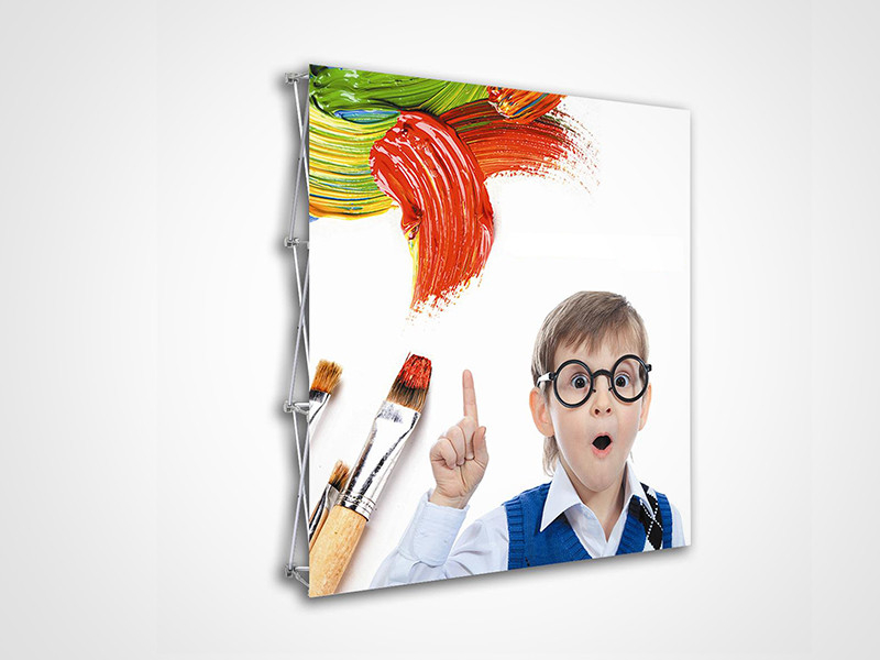 此款拉網展架為鋁合金材質,美觀且耐用并且尺寸可定制化;安裝只需拉開即可,畫面通過刺毛條黏貼,還可單面包邊多面展示;安裝調節腳和射燈可提高產品的穩定性和展示的美觀程度。