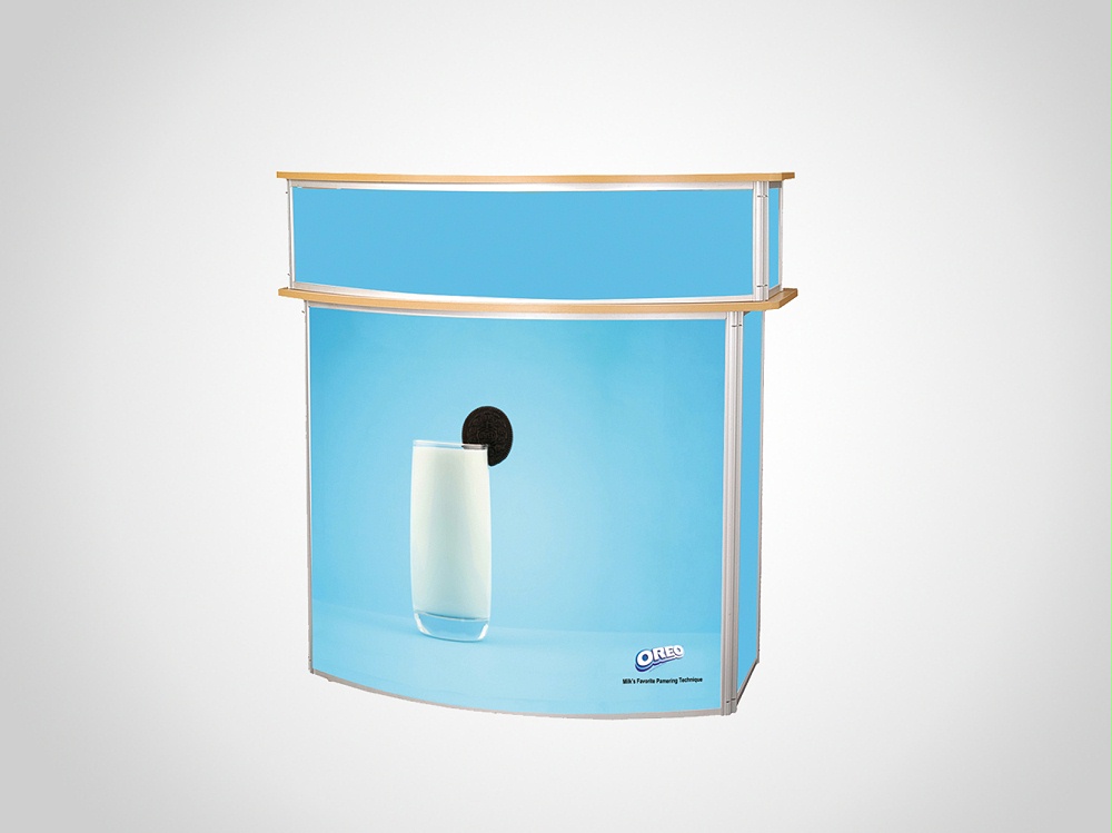 雙層結構升級,更加美觀、容量更大;鋁合金材質框架,齒柱式結構,可折疊并且美觀耐用;弧形臺面合計使整個促銷臺結構穩定,高度根據人挺工程學制定,設計合理舒適;標準配有門鎖避免物品丟失。
