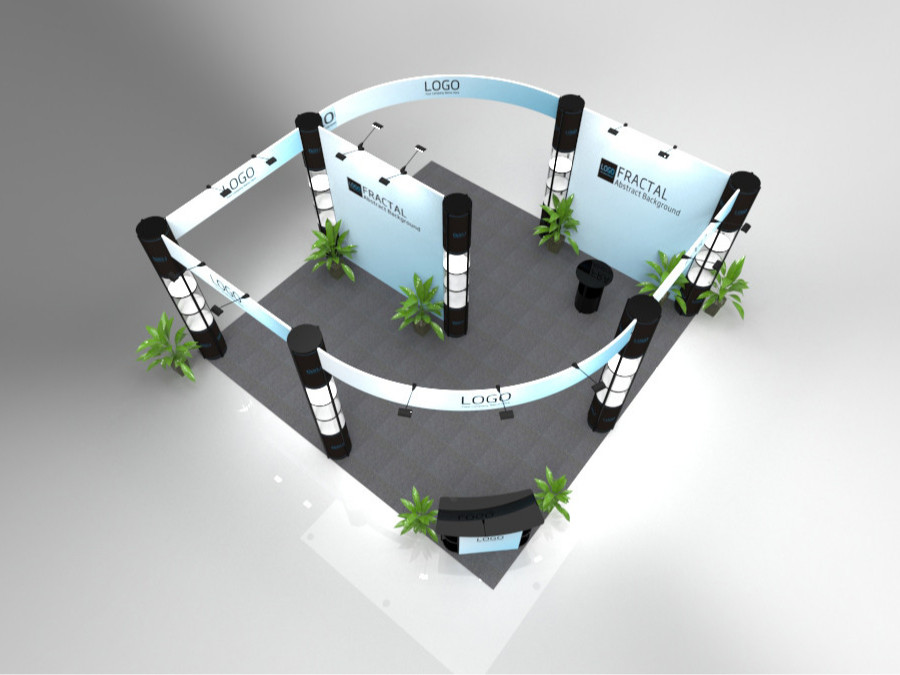 展臺(tái)的立柱模塊,是在標(biāo)準(zhǔn)魔層單品尺寸(2060mm)上增加圈層以達(dá)到合適的展臺(tái)高度,一般設(shè)計(jì)高度為3m左右;立柱有圓柱形和方形可選,且 立柱內(nèi)可以根據(jù)需求 定制照明燈盞的數(shù)量,立柱即 可作為展示櫥窗; 立柱默認(rèn)顏色為黑色或白色,如有特殊需求,也可以配色定制。快幕秀背景和楣頭模塊,此模塊尺寸在現(xiàn)有設(shè)計(jì)方案中均為固定值,也可以根據(jù)客戶需求進(jìn)行尺寸定制;